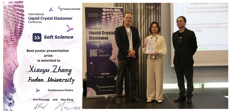 国际液晶弹性体会议是该研究领域内最具影响力与权威性的国际学术会议之一。此次获奖,不仅是对她研究成果创新性与学术价值的极高肯定,也彰显了本课题组在液晶弹性体前沿交叉领域的科研实力与国际水准。我们特此热烈祝贺!
